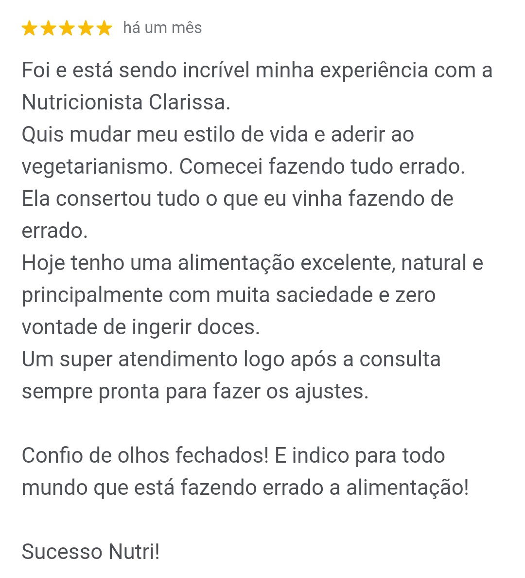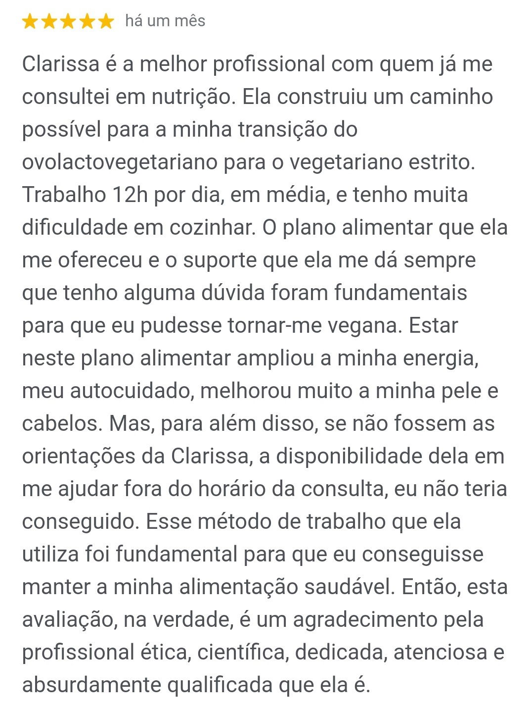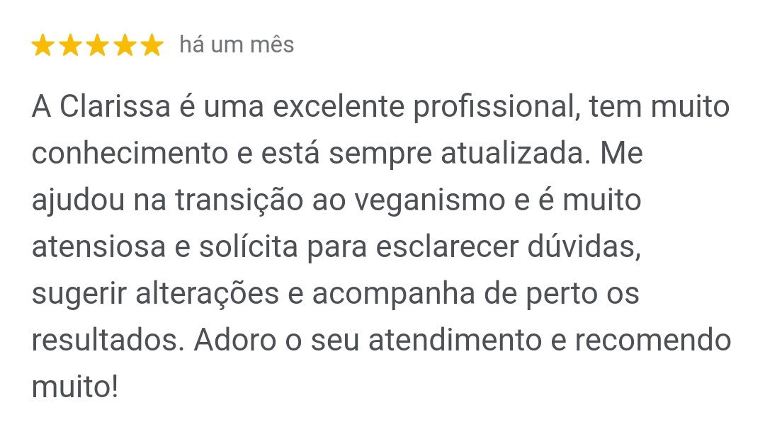 Agenda uma consulta online com a Nutri Clarissa, referência há 10 anos em atendimento de Vegetarianos e Veganos no Brasil.